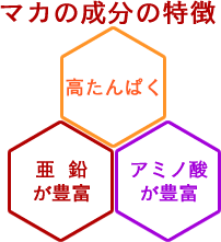 またマカには体内では合成できない「必須アミノ酸」や、亜鉛や鉄などもバランスよく含まれています。